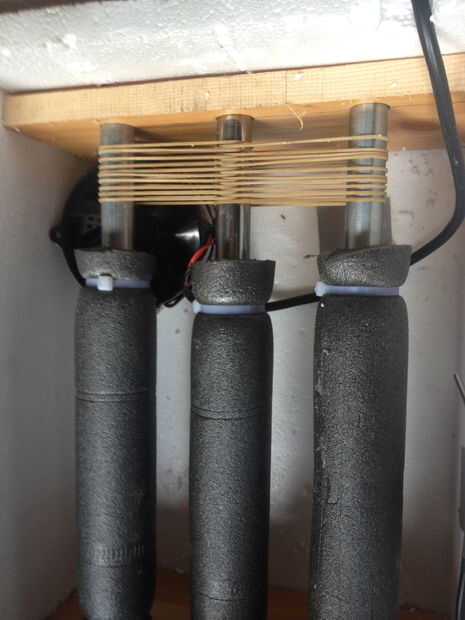 Luego corté dos piezas de pino 120mm de alto y el ancho de mi caja, luego había marcado una línea de 100mm de la parte inferior y luego el centro y 70 m m cada lado, esto es por lo que las bandas elásticas que se utilizan para conducir los dos a cada lado sería ajustados. Luego perforar los agujeros con una broca de 22mm forester y había ranurado todo juntos. Poner un cordón de silicona en la ranura de corte y celebré junto con ataduras de cables y clips del Jubileo (se quedó sin las ataduras de cables)