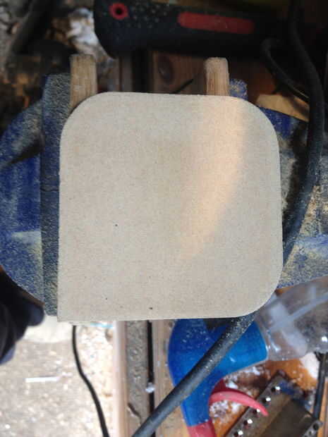 Luego perfore un agujero de 10mm de cada lado de la esquina no redondo y luego perfore un agujero que es más grande que el diámetro del tornillo que está utilizando al menos 1mm, mi tornillo tenía un diámetro de 3mm así que perforó un agujero de 4mm y había lo había avellanado, esto es para que la pieza superior puede oscilar libremente en el tornillo.