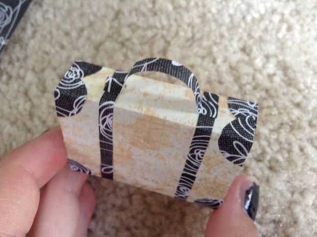 Doble dos lengüetas pequeñas que usted puede pegar el mango hacia abajo. Recorte las pestañas si es necesario.