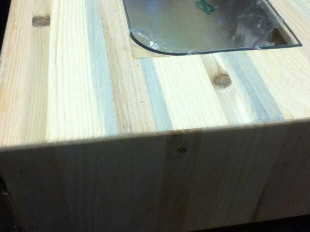 Como el nombre lo dice esta es una pequeña mesa de café, así que aquí están las dimensiones de la parte superior e inferior son 31/17 ambos tienen 45 años los dos lados son 7/17 (Asegúrese de que el grano se va para el lado de siete pulgadas). AMBOS tienen 45 años para el vidrio corte en el centro un rectángulo que representa un 6.5/23.5 un labio .25inch sostener el vidrio. (el cristal consiguió en menards y no lo sabían fue redondeado apagado así que tuve que agregar dos triángulo redondeado a los lados) Me gusta aunque el aspecto de los bordes redondeados. "Le da carácter". (Por "ambos tienen 45 años que quiero decir que se cortan en un ángulo de 45 grados)