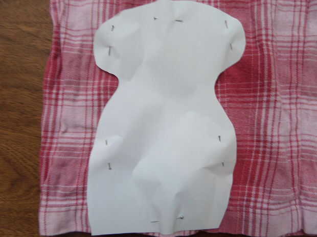 OK ahora ha hecho la plantilla que vas a cortar desde la parte inferior de un pantalón para que usted obtenga dos de la misma paz (no olvide precisar la plantilla!!) Ahora corte una forma que puede caber en el óvulo pero no para llenar con otra tela.