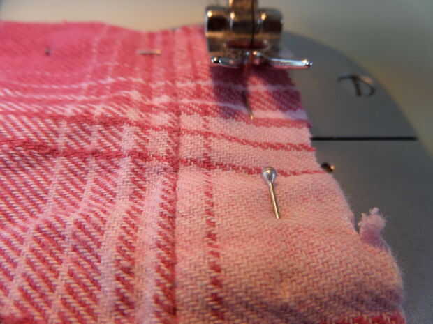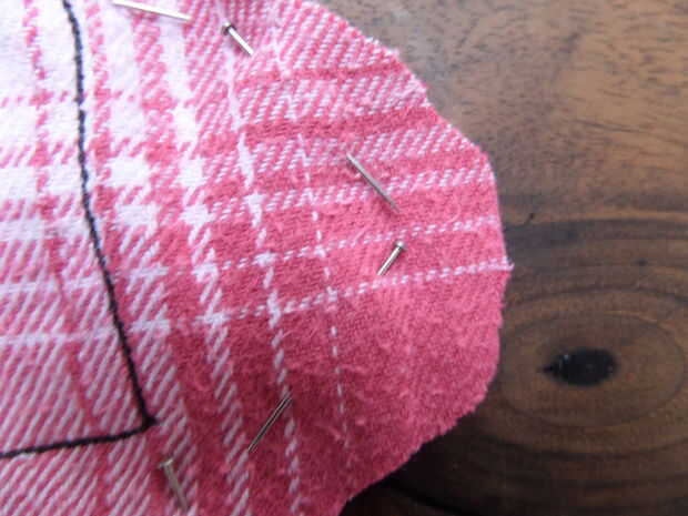 Ahora gire al tejido lateral hacia fuera y pin juntos. Ahora coser alrededor de la parte de afuera pero deje un espacio para el relleno de la muñeca!