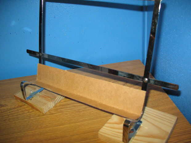 "Hice" Esto hace mucho tiempo cuando necesitaba un soporte para Ocarina fichas que había impreso. Es bastante eficaz. Uno de mis amigos me dieron el soporte y decidí mod lo un poco por lo que podría sostenerse para arriba. Doblar las piezas de abajo y me pegado un pedazo de cartón delgado en la parte inferior para ayudar a sostener las cosas. Luego simplemente pegué las cosas de fondo 2 a un par de bloques de madera.