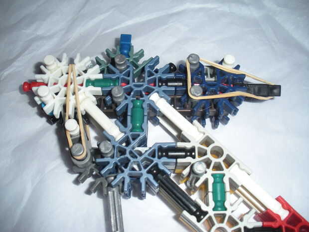 esta pequeña pistola K'nex es muy simple y utiliza solo 12 piezas (no incluye munición o una vista). No utiliza una banda elástica o bien.Paso 1: partes Arma:4 barras azul2 barras amarillas1 barra blanco2 conectores verdes1 conector amarillo3 conecto