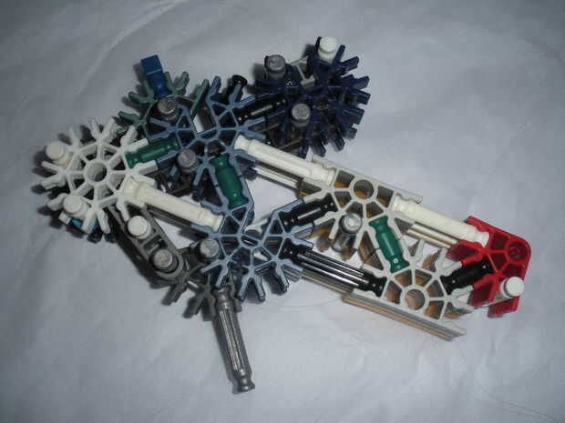 esta pequeña pistola K'nex es muy simple y utiliza solo 12 piezas (no incluye munición o una vista). No utiliza una banda elástica o bien.Paso 1: partes Arma:4 barras azul2 barras amarillas1 barra blanco2 conectores verdes1 conector amarillo3 conecto