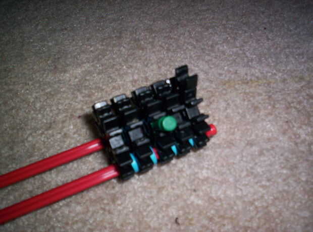 este es mi primer instructable. ¡ YAY!Mi coche poco se puede ir alrededor de esquinas, muy aseadas.Un video de ella:ohttp://www.youtube.com/watch?v=6YAWwmKREoIPiezas que necesita:pequeñas barras verdes: 4barras de blancas o gris: 5barras rojas: 3barr
