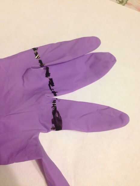 Cortar los dedos del guante (perforable tres los principales).