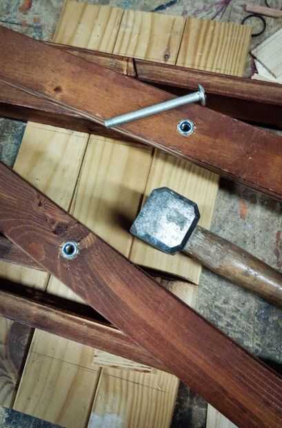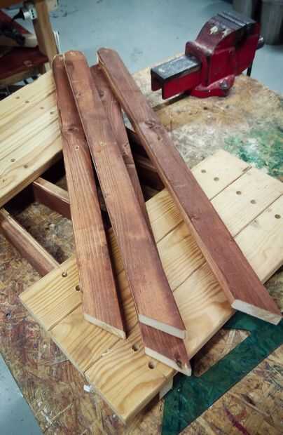 Ahora hay que proceder con algunos detalles. Taladro no demasiado profundos agujeros donde insertar tuercas. Cortan las patas en diagonal con ángulo recto. La mejor manera de determinar el ángulo colocar montar tabla en una superficie y uso de un goniómetro.