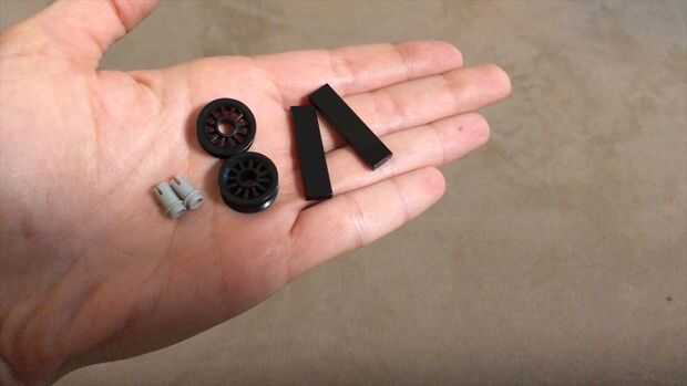 Hemos añadido un pin de la mitad a una rueda y adjunta una ficha de 1 x 4 para. La rueda de rodillos muy suavemente.