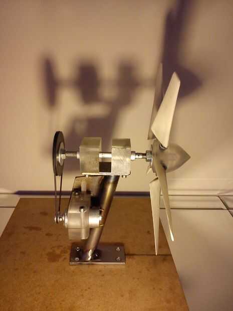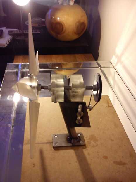 Actualmente estoy terminando dos años ingeniería curso tecnología de turbina de viento tuvimos un módulo de desingn 3d (solidworks) y para una de las asignaciones diseñado una escala hacia abajo de la lámina de turbina, imprimí y probado en el túnel