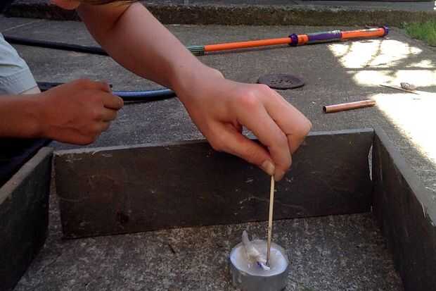 en primer lugar obtener la luz del té y luz para recoge la cera fundida en la parte inferior