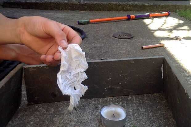 al reducir a la mitad un montón de cera derretida sople la vela y utilizar una selección de diente para rodar el papel adentro hasta todo cubierto de cera toma hacia fuera y dejar secar si su no suficiente quema de cera de la vela otra vez
