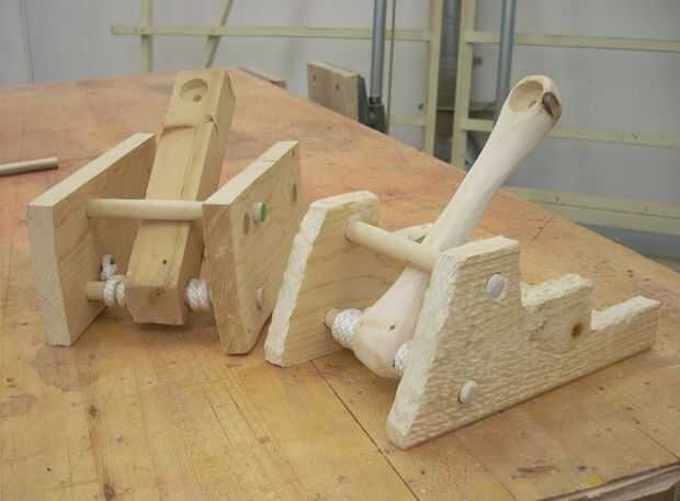 Aquí están los planos para una catapulta de escritorio pequeño ideal para la pelotita de ping pong o luchas de malvavisco. La fuerza del resorte es siempre por un mecanismo de cuerda retorcida, tan dura y dura, en contraste con banda de goma-powered