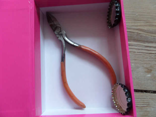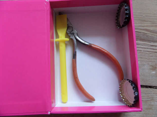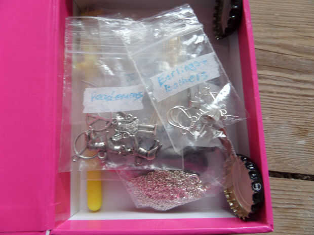 Si tienes una caja magnética entonces usted puede poner sus cápsulas en el imán, pero si no lo hace entonces usted puede poner al lado de las pinzas. Tras poner las pinzas en poner el separador en la parte superior entonces las bolsas en la parte superior entonces el pegamento y al lado de la cola su pluma pequeña y los espacios en blanco del anillo pueden ir hacia abajo los lados de las bolsas.