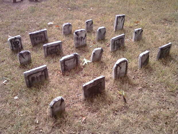 convertir la tierra pelada fea de tu hierba jardín en un cementerio antiguo encantador plantar lápidas mini!Se trata de un simple, si un poco morbosa, a hacer uso de los parches de suelo que son visibles antes de que hayan brotado sus hierbas. Tambié