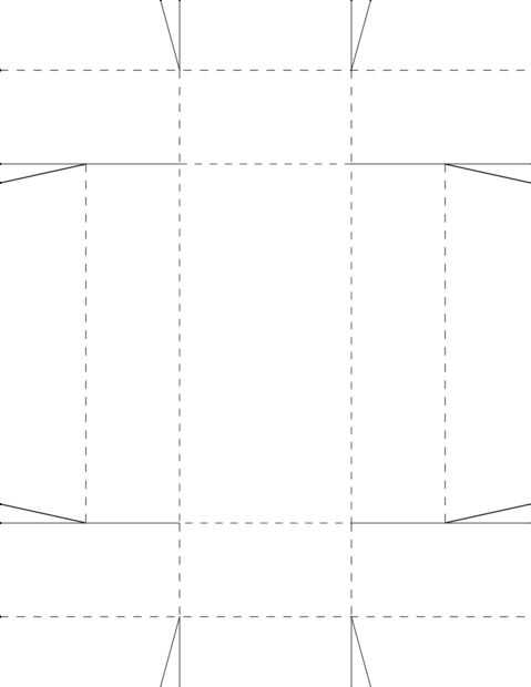 La plantilla es para uso con materiales que son tamaño 8 1/2 x 11 "solamente. Un cajón producido a partir de esta plantilla se dimensionarán aproximadamente 2-3/4" de ancho x 5-3/4" largo x 1-1/2" de alto. Tenga en cuenta que todas las líneas sólidas de la plantilla deben ser cortadas. Todas las líneas de puntos/guiones deben ser dobladas.