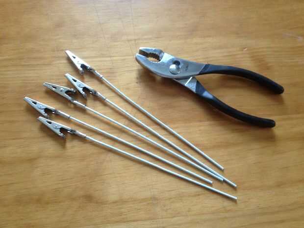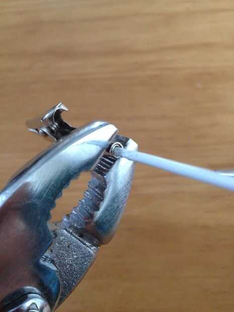 Pegue un pedazo del alambre de suspensión en el tubo enrollado, luego seguir rodando. Esto es donde Vise Grips o pinzas más grandes y más cómodos ven bien, porque quiere básicamente ensuciarse el tubo tan apretado alrededor del alambre que se mantiene en su lugar. No centrarse sólo en el extremo del tubo; tiene que estrecha a lo largo de toda la longitud para que el clip no sale.