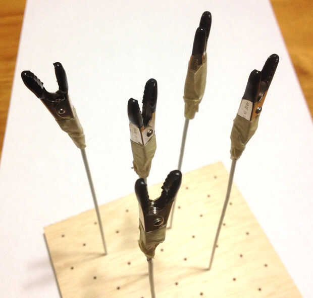 Cinta libre de clips, y luego sumerja los dientes en el Plasti Dip, siguiendo las instrucciones en la lata. El recubrimiento impide que los dientes de la pinza de rayar las superficies delicadas, pero permite que el clip de aferrarse a una pieza muy bien.
