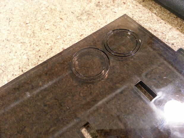 Utilizando el mismo archivo, laser corte otro anillo, de acrílico.  Este es un color gris humo, afortunadamente, no necesita lijado y es lo suficientemente fuerte como para soportar los rigores de ser un anillo.