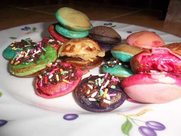 esto es un collar de tarta arco iris para chuparse los dedos. tiene seis diferentes colores de la torta y el baño de vainilla!