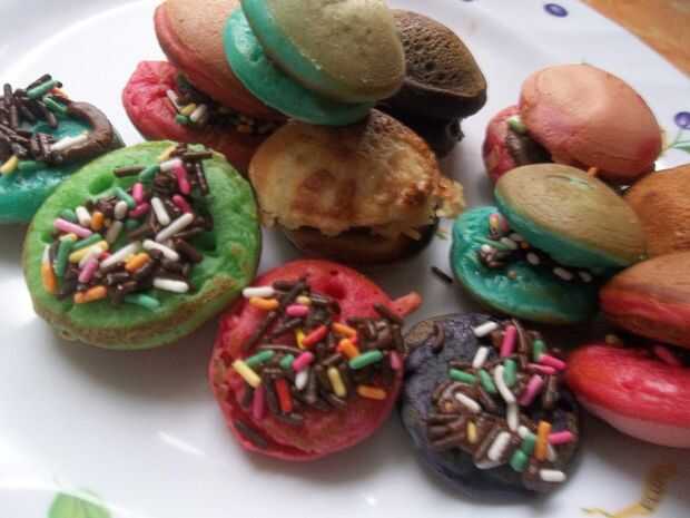 esto es un collar de tarta arco iris para chuparse los dedos. tiene seis diferentes colores de la torta y el baño de vainilla!