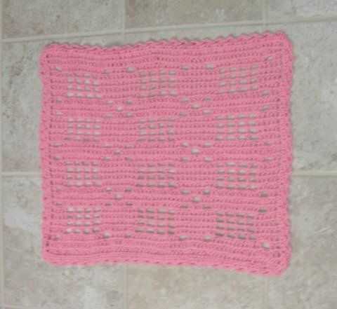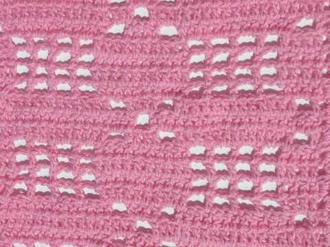 cadenas en Filet Crochet y ganchillos doble se utilizan para crear una cuadrícula y ganchillos doble se utilizan para llenar los espacios de la red para crear el patrón. Primero me introdujeron a ella por mi madre que creó un tapetito de nombre para