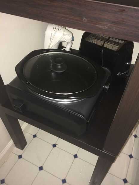 Aparatos de cocina grandes y abultados, como mi procesador de alimentos, crockpots y tostadora--se almacenan en los estantes más bajos.