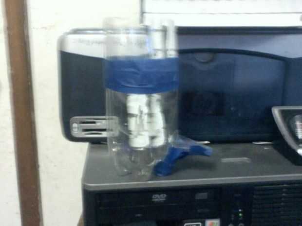 Destilador solar de pecera para el jardín...Se trata de un destilador solar simple para uso de jardinería.Hecho de reciclaje tienda partes y piezas que están ahí.Agua destilada seguro de alimentos es un juego completamente diferente, este destilador
