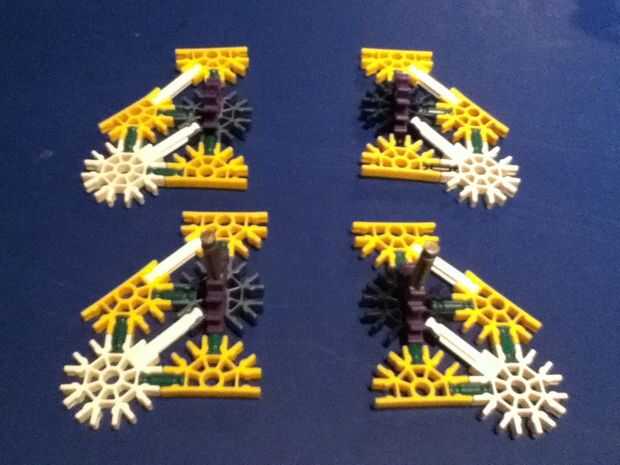 24 requiere KVG piezas, dos pequeñas bandas de goma y algunas pequeñas bandas de goma para munición (trabajo de bandas de refuerzo).Paso 1: El mango Paso 2: Cañón y disparo Paso 3: Mecanismo de carga Paso 4: Juntándolo todo Puede que tengas problemas