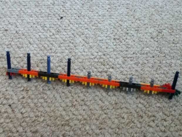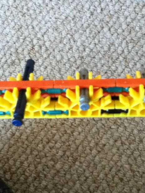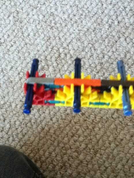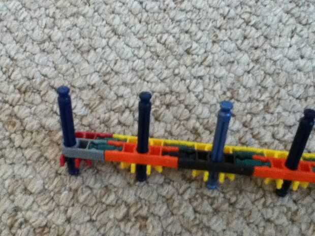 24 requiere KVG piezas, dos pequeñas bandas de goma y algunas pequeñas bandas de goma para munición (trabajo de bandas de refuerzo).Paso 1: El mango Paso 2: Cañón y disparo Paso 3: Mecanismo de carga Paso 4: Juntándolo todo Puede que tengas problemas