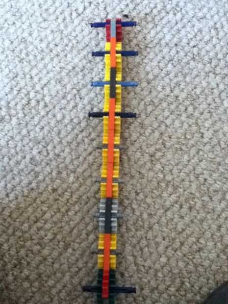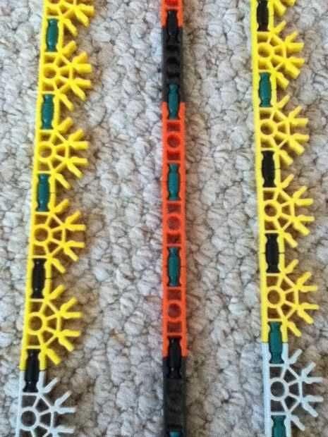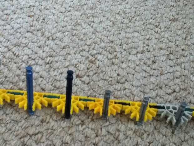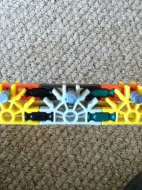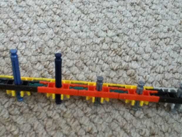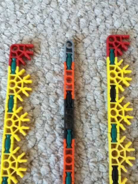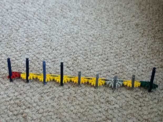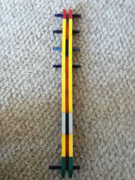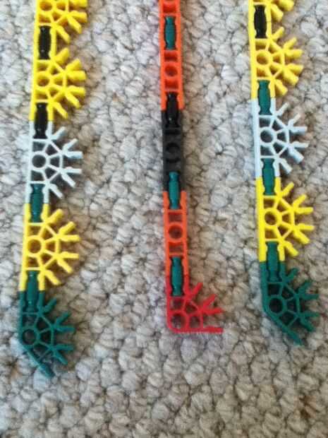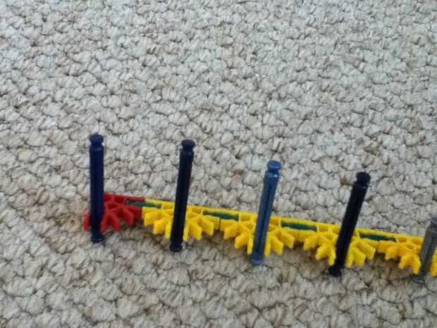 Paso 1: Conteo de piezas (opcional) Necesita: conectores: amarillo-24 rojo-10 blanco-4 verde-8 azul 4 4 púrpura naranja-7 luz gris-1 gris oscuro-6 barras: amarillo-2 azul-12 blanco-18 verde-46 otros: banda elástica grande-1 pequeña rueda-2 gris espac