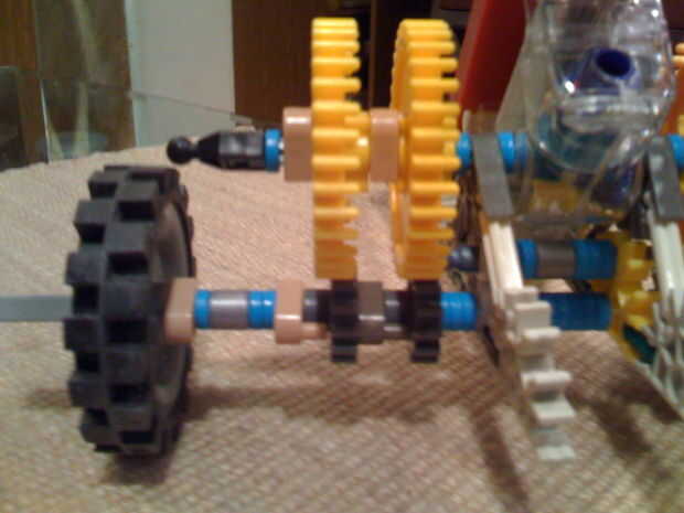 Coche K'NEX con el mecanismo de dirección