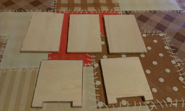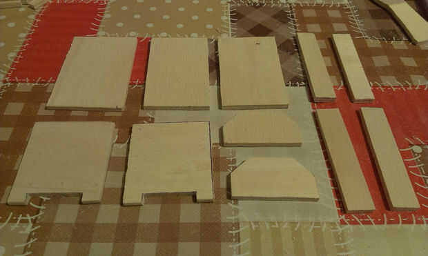 Dibujar piezas en madera y cortarlos.