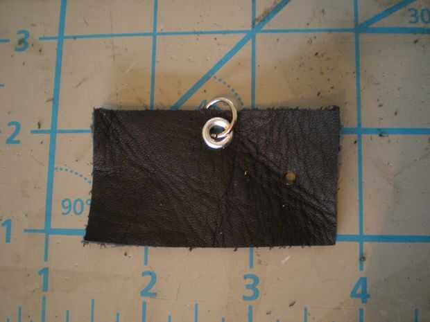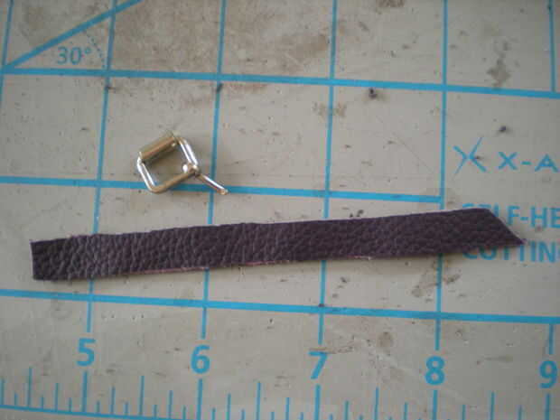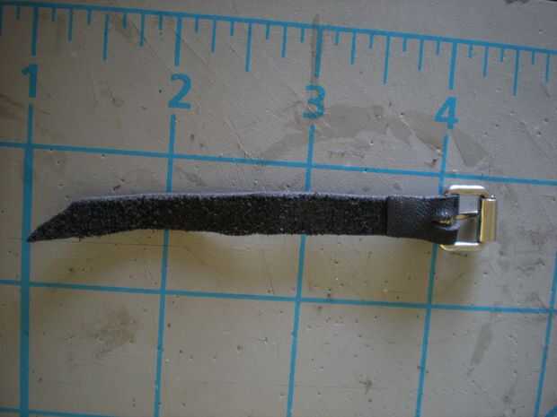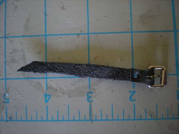 Perforar un agujero a través de ambas capas del cinturón del espacio tales que el remache no solapen la hebilla. Apartar el cinturón. A continuación, perfore un agujero en la cubierta, hasta la mitad del borde derecho de la cubierta (con el ojal en la parte superior) y mitad una pulgada en el borde. Están alineados los orificios de la correa y la tapa, el extremo de la hebilla debe sobresalir ligeramente sobre el borde de la cubierta. Esto hará que el cinturón mucho más fáciles de la hebilla. Remache de la correa a la cubierta.