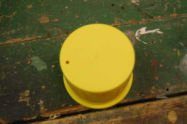 Tapa de plástico a un aerosol puede (preferiblemente uno con un borde biselado en un extremo)