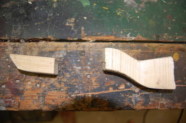 A continuación, cortar la culata y empuñadura de madera. Usted puede imprimir una plantilla si quieres, pero acaba de trazar un esbozo de la mirada en la imagen. Te recomiendo un rompecabezas o una sierra de calar si tienes uno. No te olvides de darle un buen lijado.
