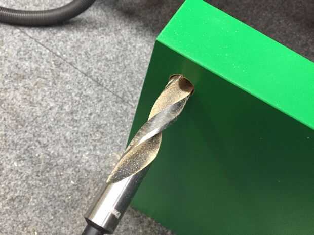 La Junta alrededor del tirón y taladrar los agujeros de 18mm (20mm), otra vez suaves y lentamente para no rayar la parte superior de la Junta.