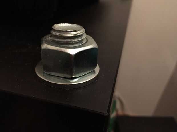 Una vez que la Junta se encuentra en las tuercas y arandelas, tomar las restantes arandelas y tuercas y colocarlos en la parte superior del tablero superior n las barras, para asegurar la placa en el lugar.