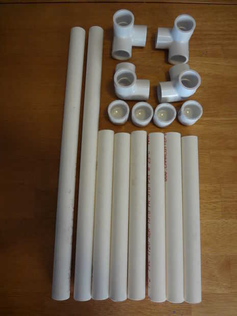 • 1 palo de 10' ½" del tubo de pvc – por lo general utilizo el tubo de pvc"pared delgada"o clase 200,. Esta pipa es más delgada, más ligero de peso y más barato que la "pared gruesa" o schedule 40 pvc pipe. Pero independientemente del tipo de tubo de pvc funcionará para este proyecto.