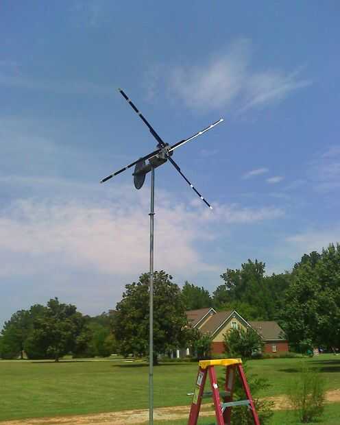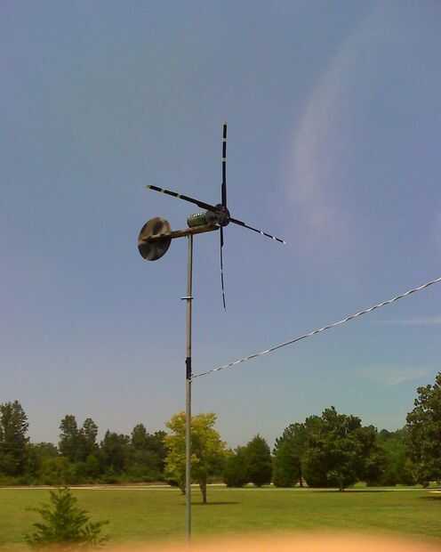 Así que condujeron a un poste de metal en el suelo y entonces había unido el mástil del molino de viento para el cargo.