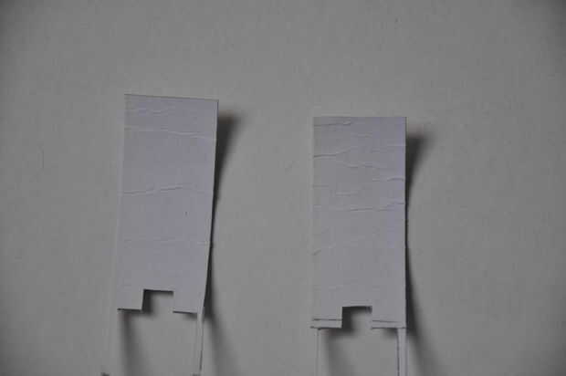 La pieza de cartón se curva alrededor de un objeto cilíndrico y el resultado puede verse en la primera foto.
