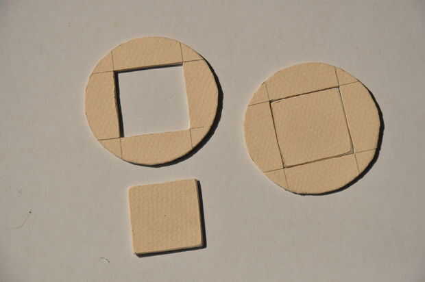 Por cada tarro de Leiden, se corta un círculo del mismo diámetro de los tarros de Leiden. En cada círculo se corta una forma que no es rotationally simétrico (por lo tanto, básicamente cualquier forma pero un círculo, un cuadrado/del rectángulo es la más fácil).