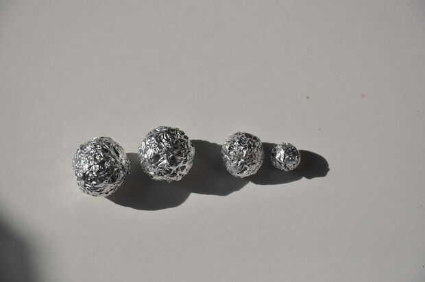 Bolas esféricas se hacen de papel de aluminio desmenuzado (principalmente porque no tengo esferas metal colocación alrededor y no pude encontrar en el DIY de cualquier tienda en el barrio)