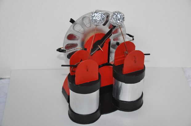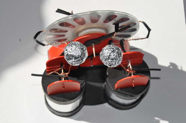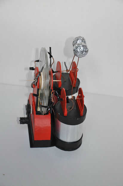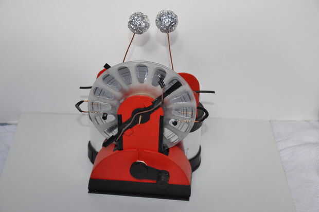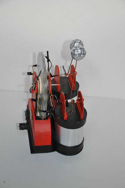 Otra cosa interesante sobre este pequeño cartón máquina de Wimshurst, es que es fácil de desmontar casi por completo para reemplazar una sola pieza y armarlo otra vez. He realizado una animación de él en el pero última animación ya que realmente no sabía qué hacer con las fotos.