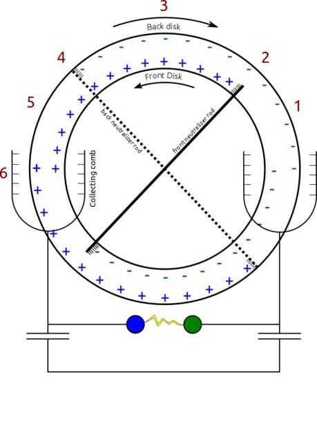 Una máquina de Wimshurst y todas las otras máquinas electrostáticas influencia no son más que versiones elegantes, mecanizadas de una especie de doble electrophorus.