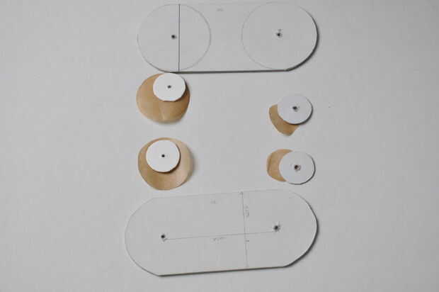 Para cada lado se recortan dos separadores circulares pequeño (0,5 mm espesor de cartón) y así se cortan algunos círculos de papel para reducir la fricción de la hornada.