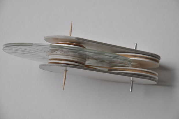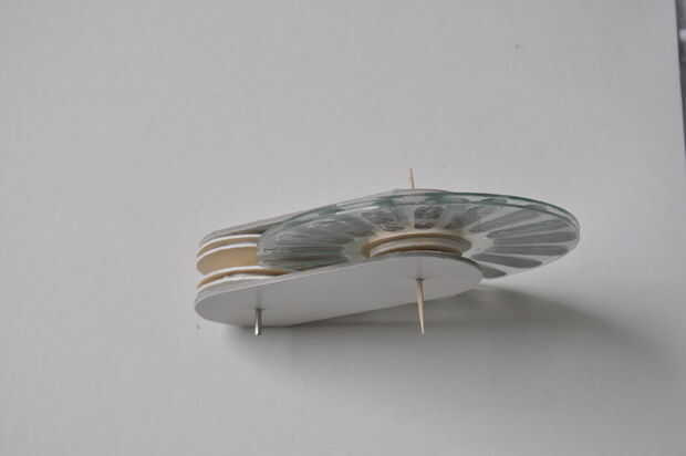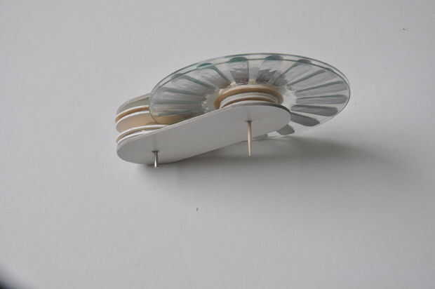 Los agujeros son perforados y ampliados en los centros de los círculos para que el eje conductor y el eje del disco pueden ser insertados y giran libremente. (Aunque no es necesario para el eje del disco puesto que los discos se pueden girar libremente alrededor del eje)