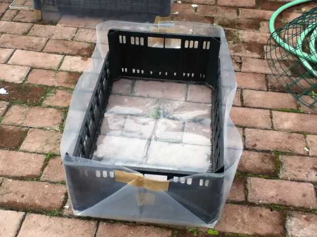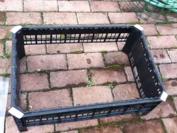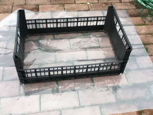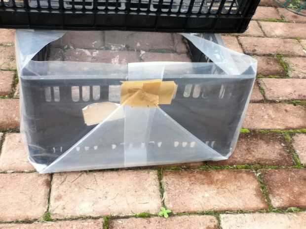 Coloque la película plástica en una superficie plana y coloque el backet. Encontré easyer con el uso de pequeños trozos de cinta doble cara (opcional). Luego doblar la película plástica para cerrar todos los lados. Utilice una buena tira de cinta de pato para finalizar en ambos extremos.