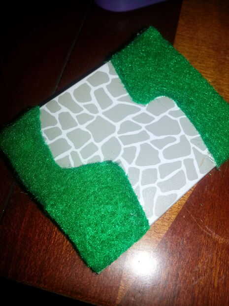 Tomar el camino de piedra y verde corte fieltro tiras por los lados hacer un camino sinuoso. Encolado con cola caliente.