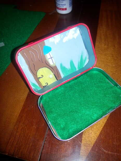 Comience por pegar el cuadrado de fieltro verde en el interior de la parte superficial de la lata.